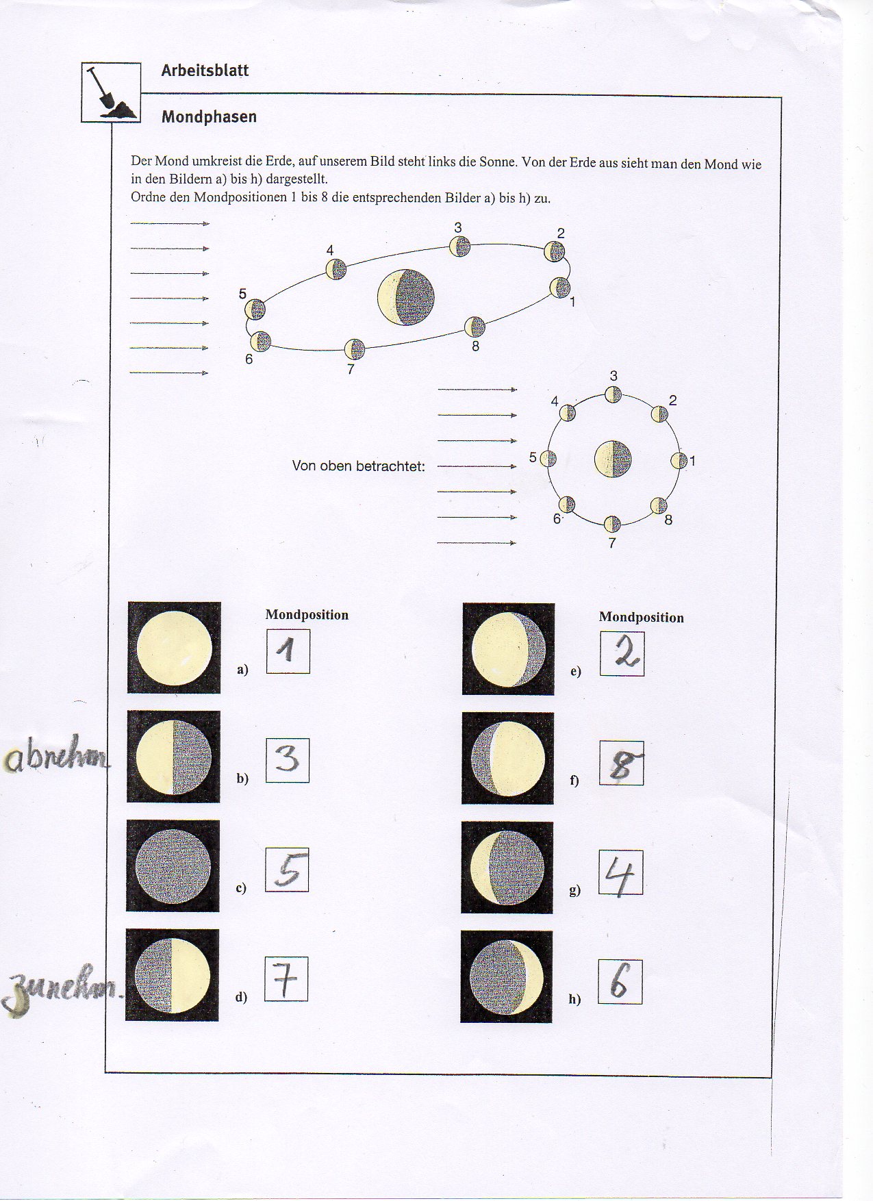 3.) Mondphasen: Arbeitsblatt